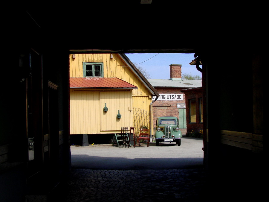 Blickar in på en bakgård i Hörby